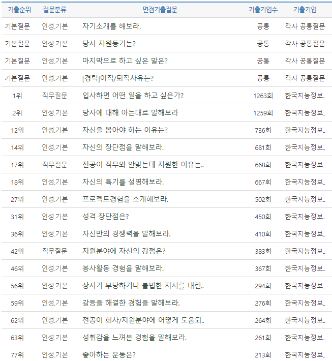 면접질문 채용 정보, 자소서 문항 분석, 자기소개서 합격 후기